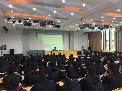 近日,秀洲区王店镇幼儿园园长余晓晖老师受邀在乐学楼二楼报告厅为秀水中专14级学前教育专业的学生进行了一次专题讲座,讲座主题为《幼儿园音乐活动指导》。