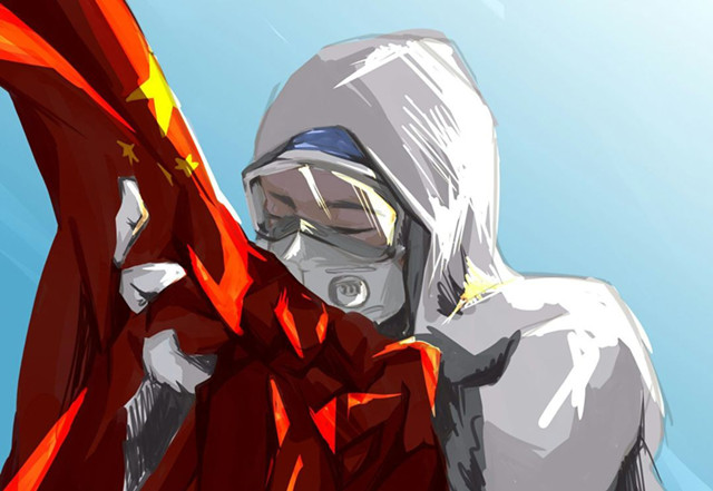我们多么感激,那一群群勇敢的战士。我们看不清你的脸,厚厚的防护服下,一个个疲惫但坚挺的身躯;薄薄的口罩下,一条条深深的勒痕。严峻疫情里,你们留给我们一道道逆行的身影。因为有你们,我们知道了,五星红旗里凝聚的,是一颗颗火热的心。