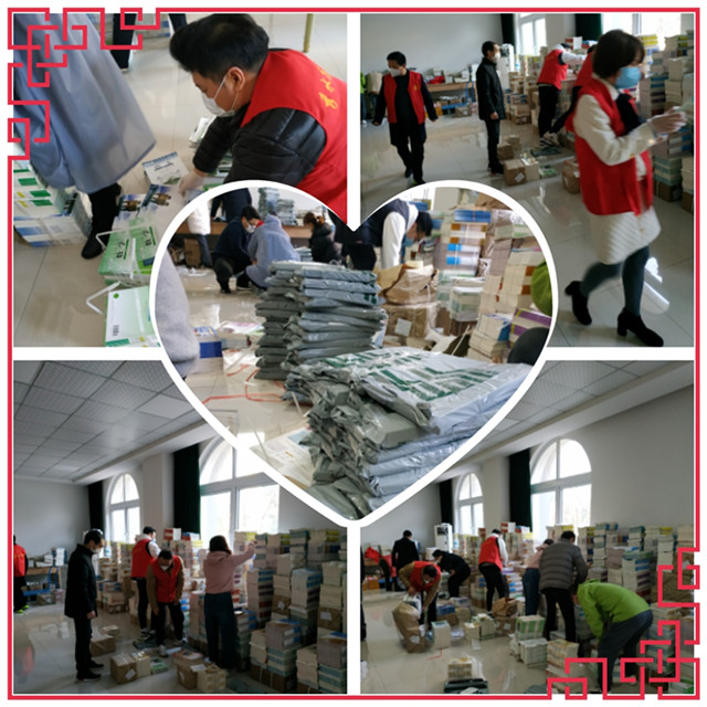 在教务处的带领下,各年级组织班主任志愿者将学生配套线上学习的教材按照班级拣书、装袋、打包、贴标、搬运……为了尽快把书本发放到学生手中,所有志愿者齐心协力,不辞辛苦,紧锣密鼓地完成了包装任务。