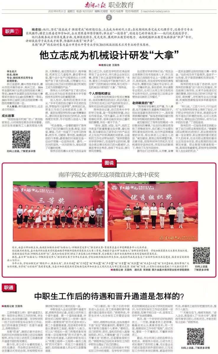 《南湖晚报》职业教育·他立志成为机械设计研发“大拿”