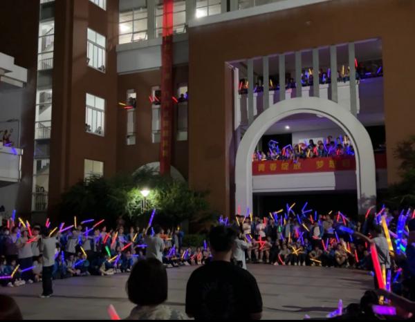 每一句口号都铿锵有力,每一句祝福都掷地有声。这一声声呐喊,不仅是对高三学子们的鼓励和支持,更是对青春的最好诠释。这一刻,每一个人都在为梦想而努力,为高考而奋斗。高三学子热切回应着这一波又一波的鼓励和祝福,奋力鼓掌喝彩,感动与热血在校园蔓延。夜幕下,摇曳的五彩缤纷的荧光棒将现场化作梦幻的海洋。
