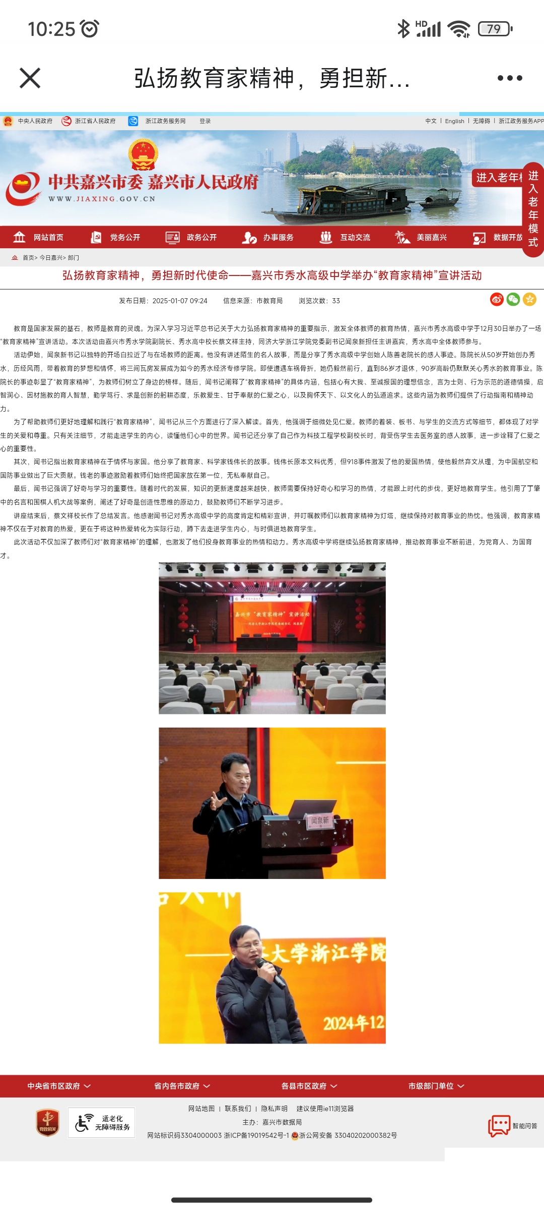 【嘉兴市人民政府网】弘扬教育家精神,勇担新时代使命——嘉兴市秀水高级中学举办“教育家精神”宣讲活动
