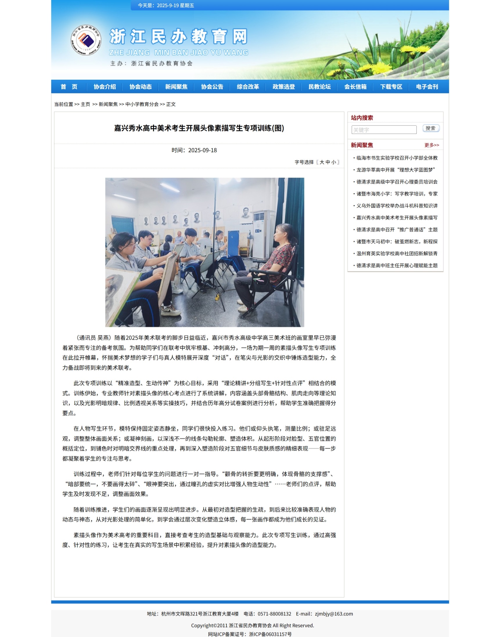 【浙江民办教育网】嘉兴秀水高中美术考生开展头像素描写生专项训练