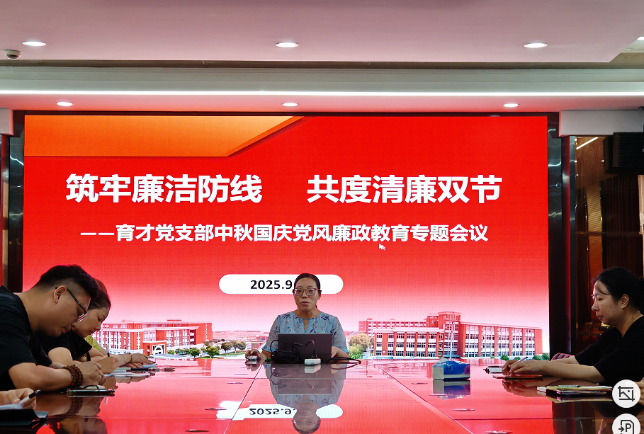 2025年9月25日下午,嘉兴市秀水高级中学育才党支部组织召开中秋、国庆节前党风廉政教育专题会议,强化党员廉洁自律意识,营造风清气正的节日氛围,会议由党支部书记汪秀勤主持。