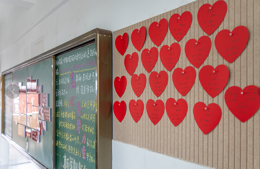 高三班级的布置则充满了冲刺的力量与陪伴的温情。“首考加油,翻越你的浪浪山”等标语,简洁有力,直击备考关键;还有班级用“英才榜”展示同学们的进步与风采,用“心愿墙”上的红色爱心卡片,承载彼此的鼓励与祝福。黑板报一方面回顾历史,厚植家国情怀,另一方面也以“新学期,新征程”为引,描绘出青春的花样年华与对梦想的执着追求,让冲刺的日子既有紧张的氛围,更有温暖的底色。