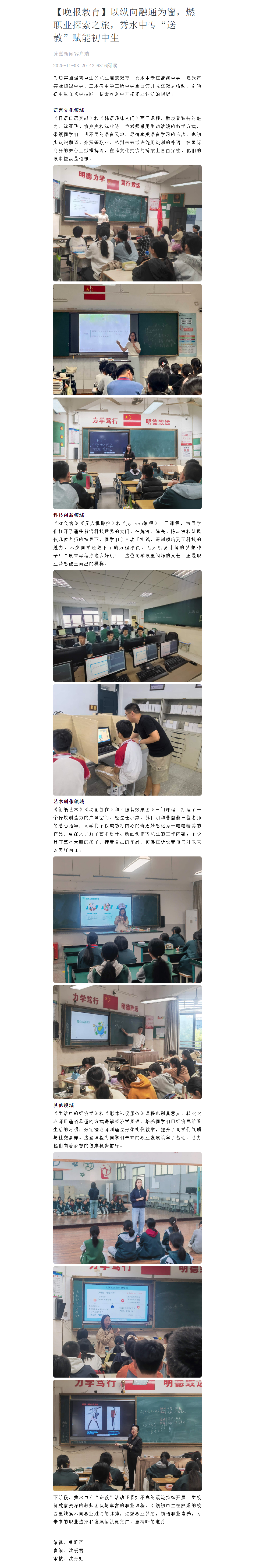 【晚报教育】以纵向融通为窗,燃职业探索之旅,秀水中专“送教”赋能初中生