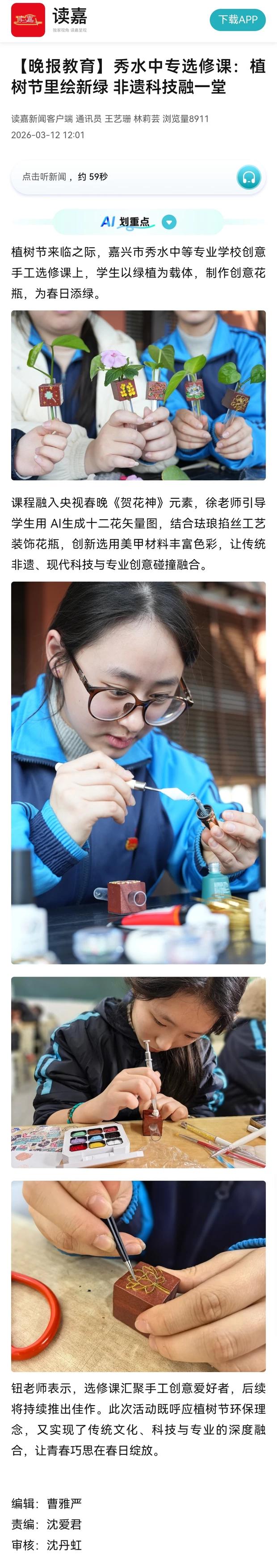 【晚报教育】秀水中专选修课:植树节里绘新绿 非遗科技融一堂